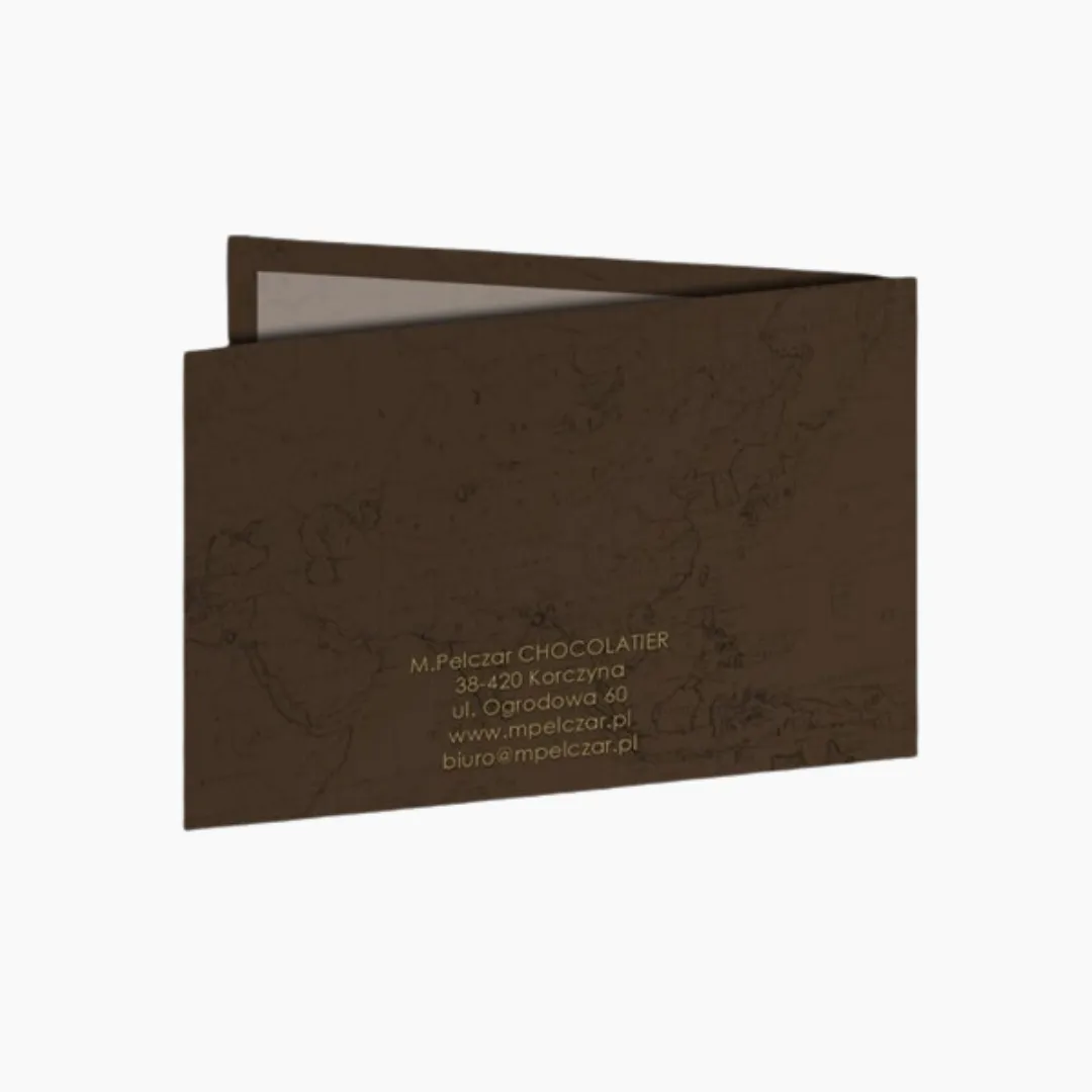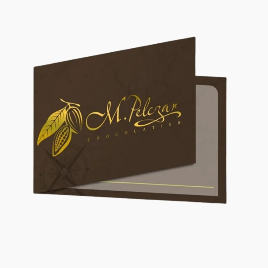 Chcesz wysłać czekoladowy prezent? Zadbaj aby obdarowywana osoba wiedziała od kogo otrzymała upominek! Front bileciku jest ozdobiony logo M.Pelczar Chocolatier a w środku znajdziesz miejsce na Twoją dedykację, której treść trzeba podać w 3 kroku w koszyku w uwagach do zamówienia.