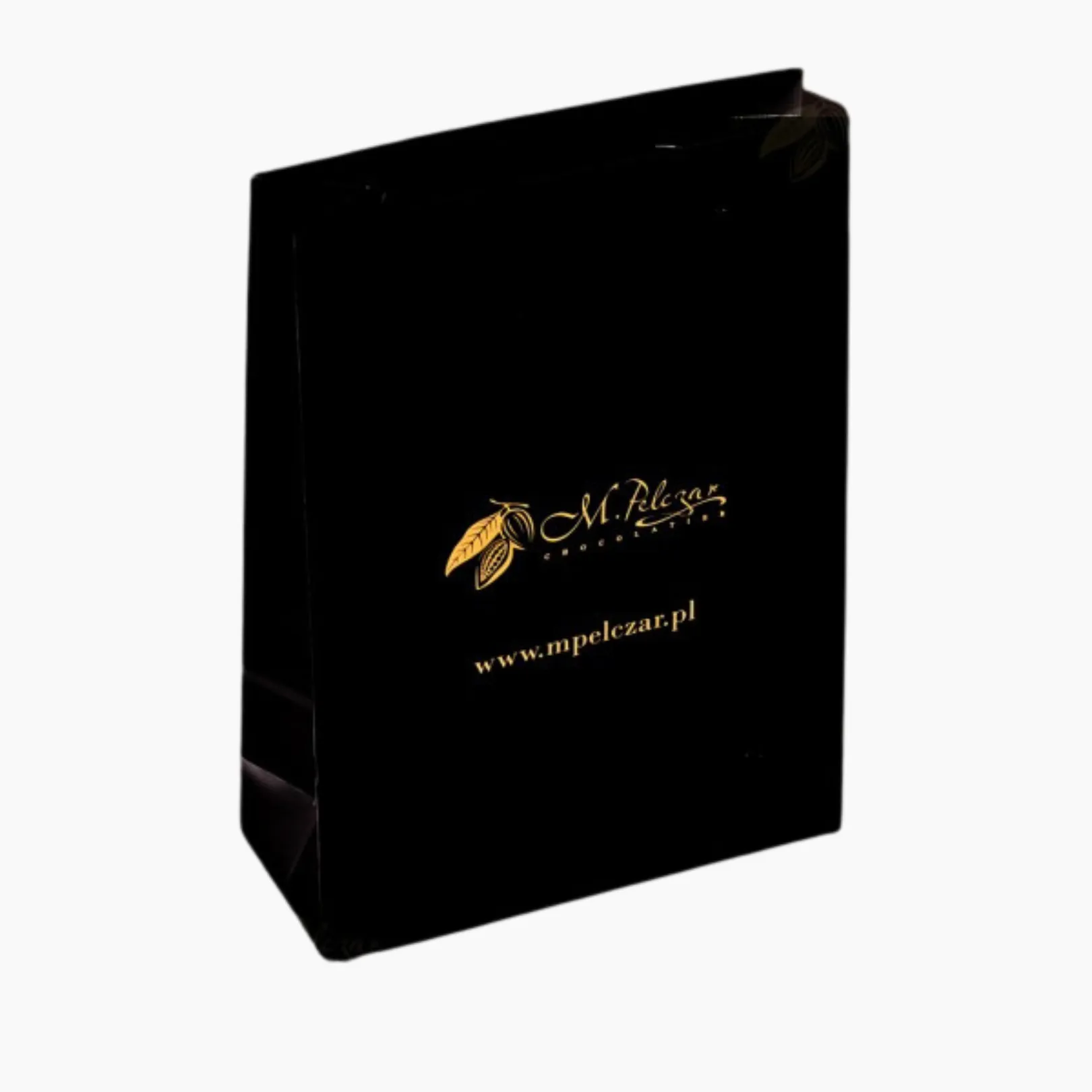 Butelka szampana została wykonana z gorzkiej i białej czekolady, szampański prezent zadowoli każdego wielbiciela czekolady. Zapakowana w przeźroczysty celofan i firmową torbe.