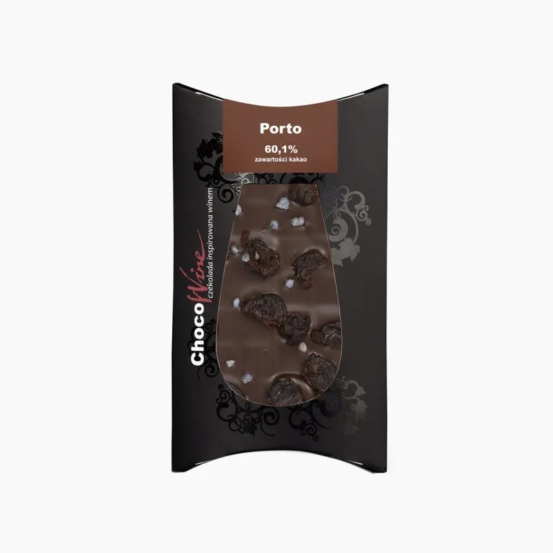 Wino wzmacniane pochodzące z regionu o tej samej nazwie na północy Portugalii. Aby uzyskać w winie czekoladowo wiśniową słodycz przerywa się fermentację poprzez dolanie destylatu z wina uzyskanego z tej samej odmiany winogron. W wyniku tego procesu otrzymuje się wino słodkie i wzmacniane. Dolany destylat podwyższa zawartość alkoholu w winie i nadaje mu aksamitności. Tak jak Porto, nasza czekolada jest wzmacniana i pokryta wiśniami w spirytusie. Aby nadać jej niepowtarzalny, charakterystyczny, dębowy zapach leżakuje zawczasu w whiskey. Fiołki w cukrze i wanilia oddają bogactwo niuansów smakowych tego wina i podkreślają jego słodycz. Intensywna w aromatach, zharmonizowana w smaku.