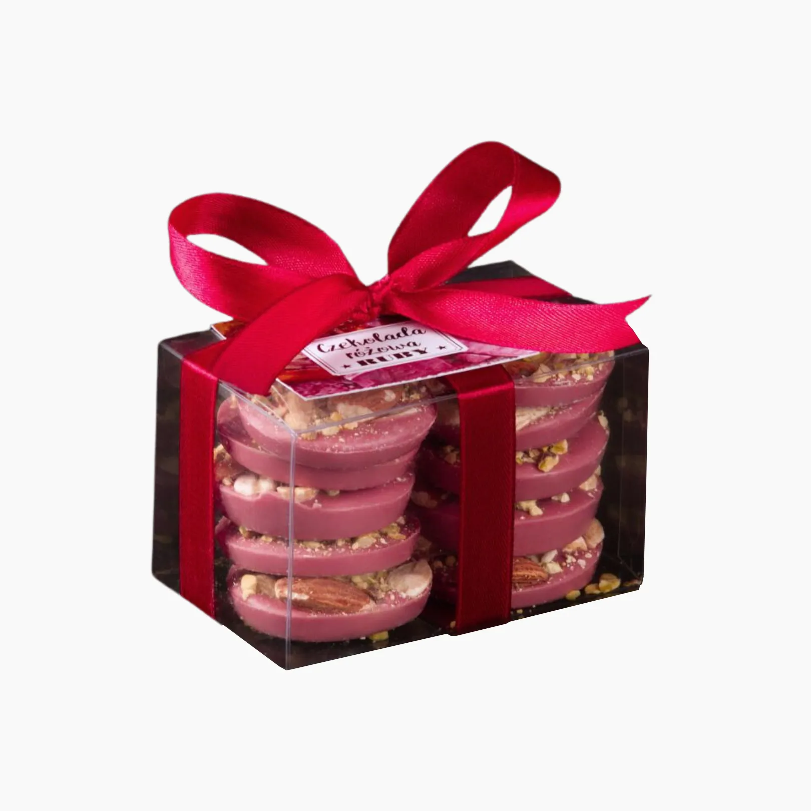 Różowa czekolada to jest to. A różowe ciasteczka z bakaliami świetne. Ślicznie wyglądają w opakowaniu i pysznie smakują.