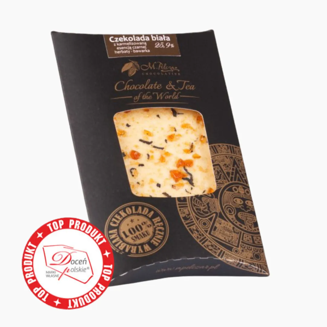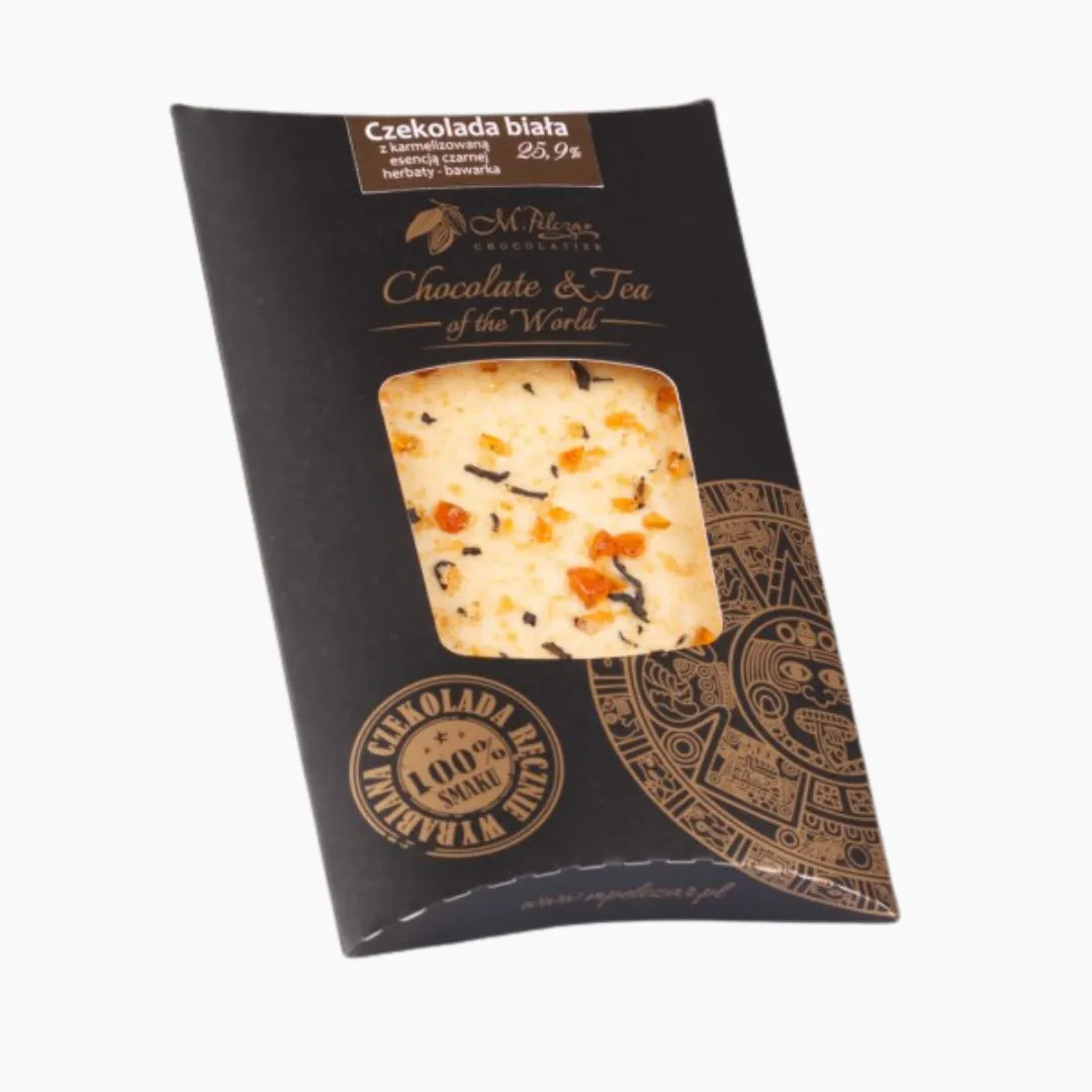 Czekolada biała 25,9% z karmelizowaną esencją czarnej herbaty - bawarka