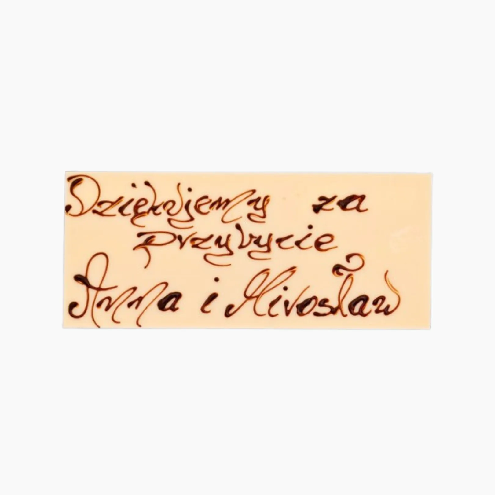 Czas realizacji zamówienia - do 7 dni, od momentu złożenia zamówienia do chwili wysyłki towaru ze sklepu. Jeśli chcesz zmienić treść napisów prosimy o kontakt: biuro@mpelczar.pl lub 605577749, 607996333. Czekolada zapakowana w przeźroczysty celofan i przyozdobiona wstążeczką.
