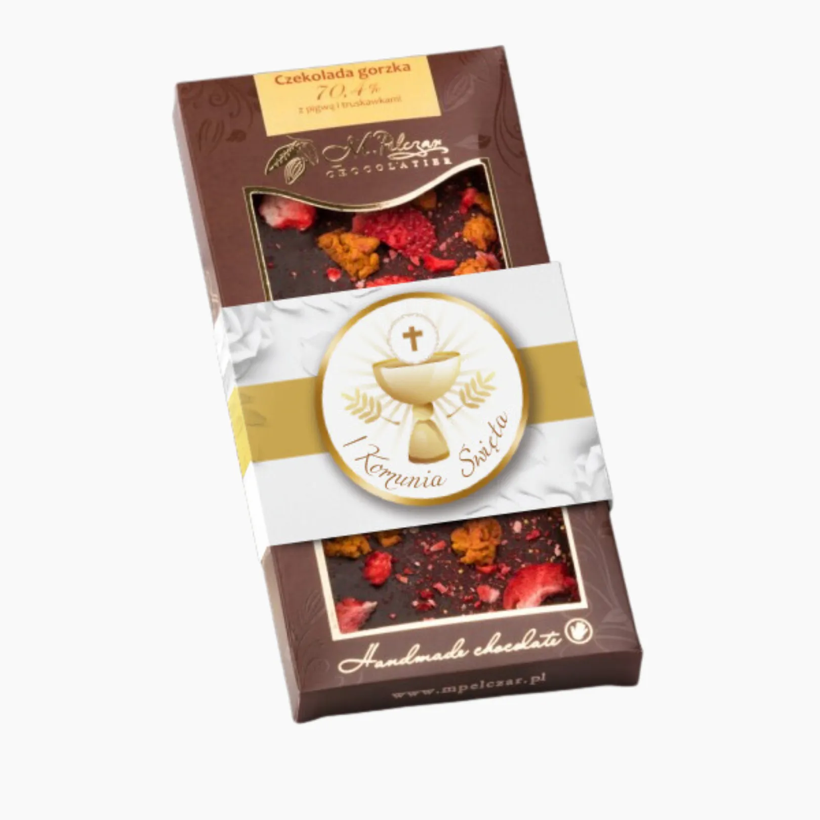 Jest bardzo ciemna i gorzka, posiada wspaniały smak i aromat oraz delikatną nutę kwiatów, wyprodukowana z ziarna kakaowego pochodzącego z Afryki Zachodniej, w połączeniu ze słodyczą polskich truskawek i pigwą tworzy idealną parę.