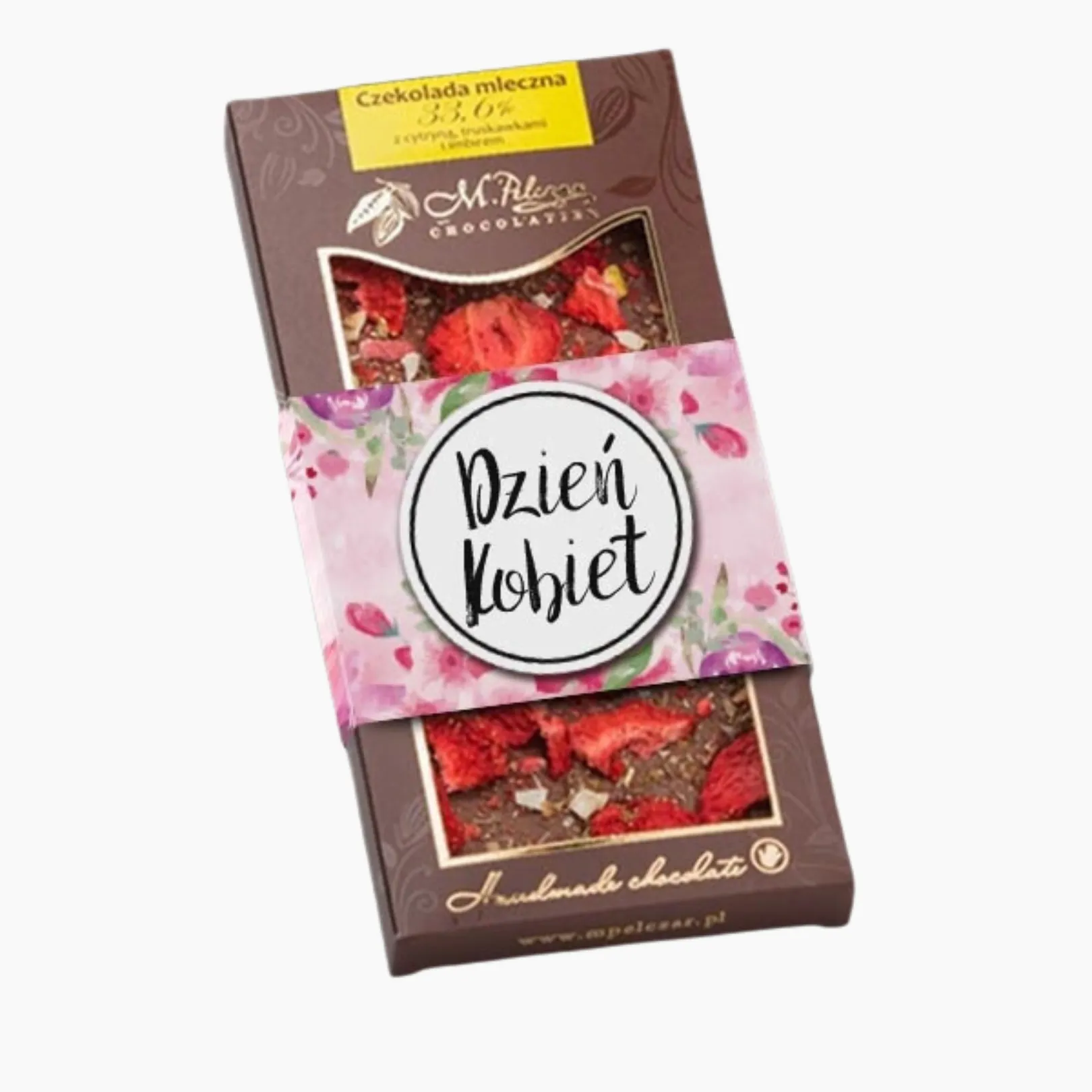 Orzeźwiająca cytryna, słodycz polskich truskawek i delikatna nuta imbiru, zadziwia wspaniałym smakiem i idealną harmonią, to wszystko zatopione w wyjątkowo delikatnej mlecznej czekoladzie, która charakteryzuje się ciepłym kolorem i zrównoważonym smakiem ziarna kakaowego, mleka i karmelu.