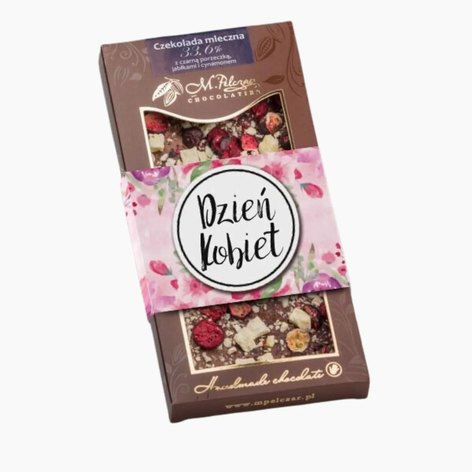 Niebiańskie połączenie soczystej czarnej porzeczki, jabłek i cynamonu w mlecznej czekoladzie, która charakteryzuje się ciepłym kolorem i zrównoważonym smakiem ziarna kakaowego, mleka i karmelu.