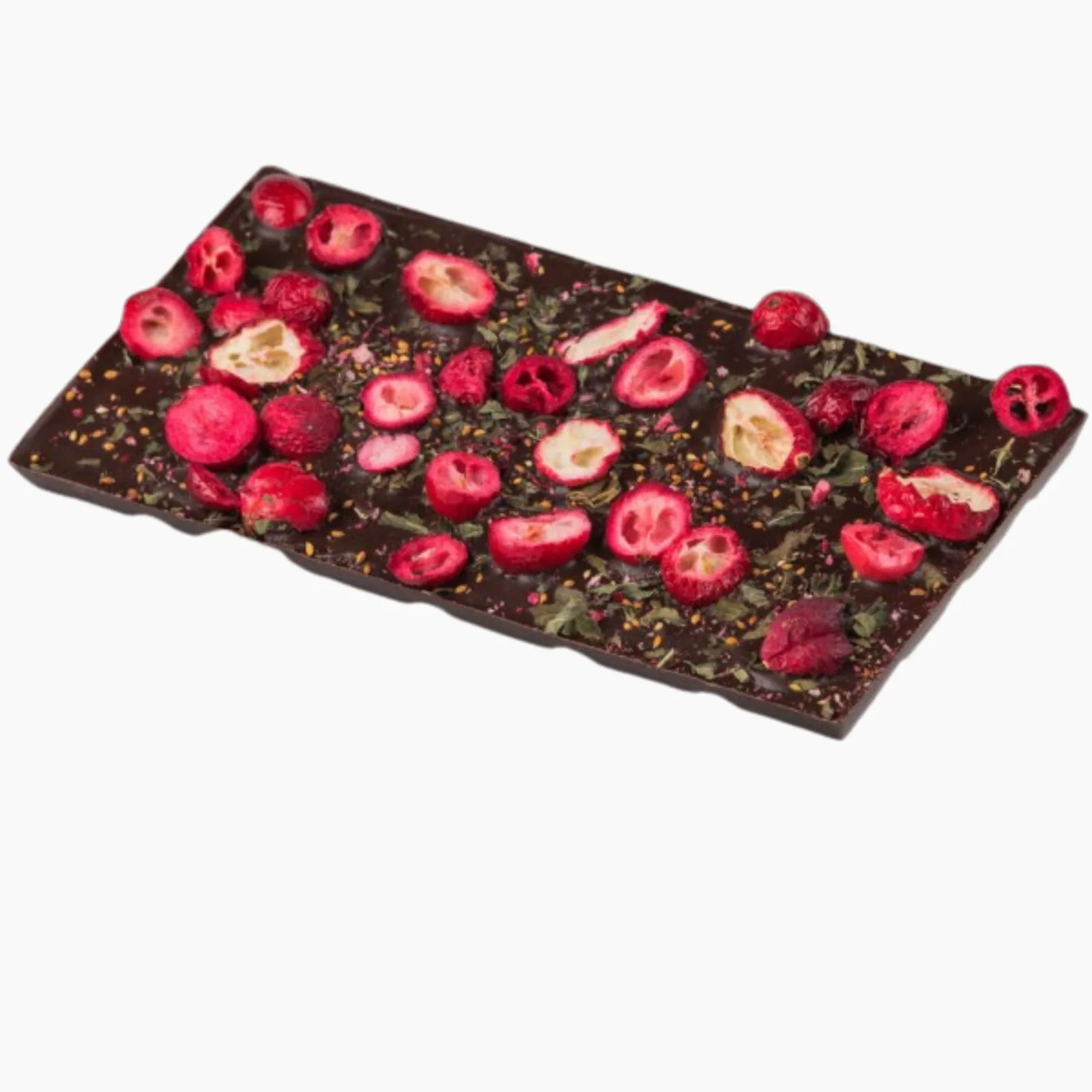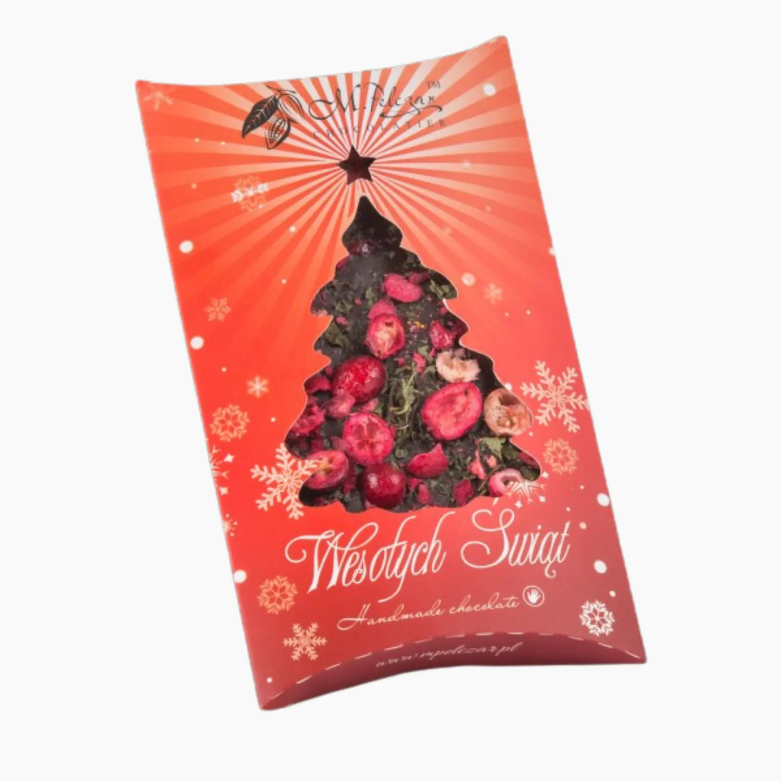 Jest bardzo ciemna i gorzka, posiada wspaniały smak i aromat oraz delikatną nutę kwiatów, wyprodukowana z ziarna kakaowego pochodzącego z Afryki Zachodniej, wzbogacona naszą Polską aromatyczną miętą i żurawiną tworzy idealny duet.