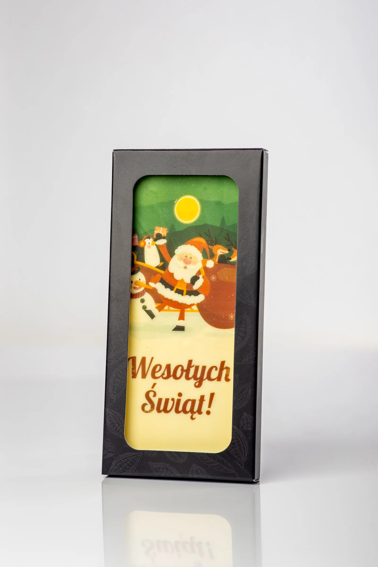 Składniki: czekolada biała (cukier, tłuszcz kakaowy, mleko pełne w proszku, emulgator: lecytyna sojowa, naturalny aromat waniliowy). Masa kakaowa minimum 25,9%.