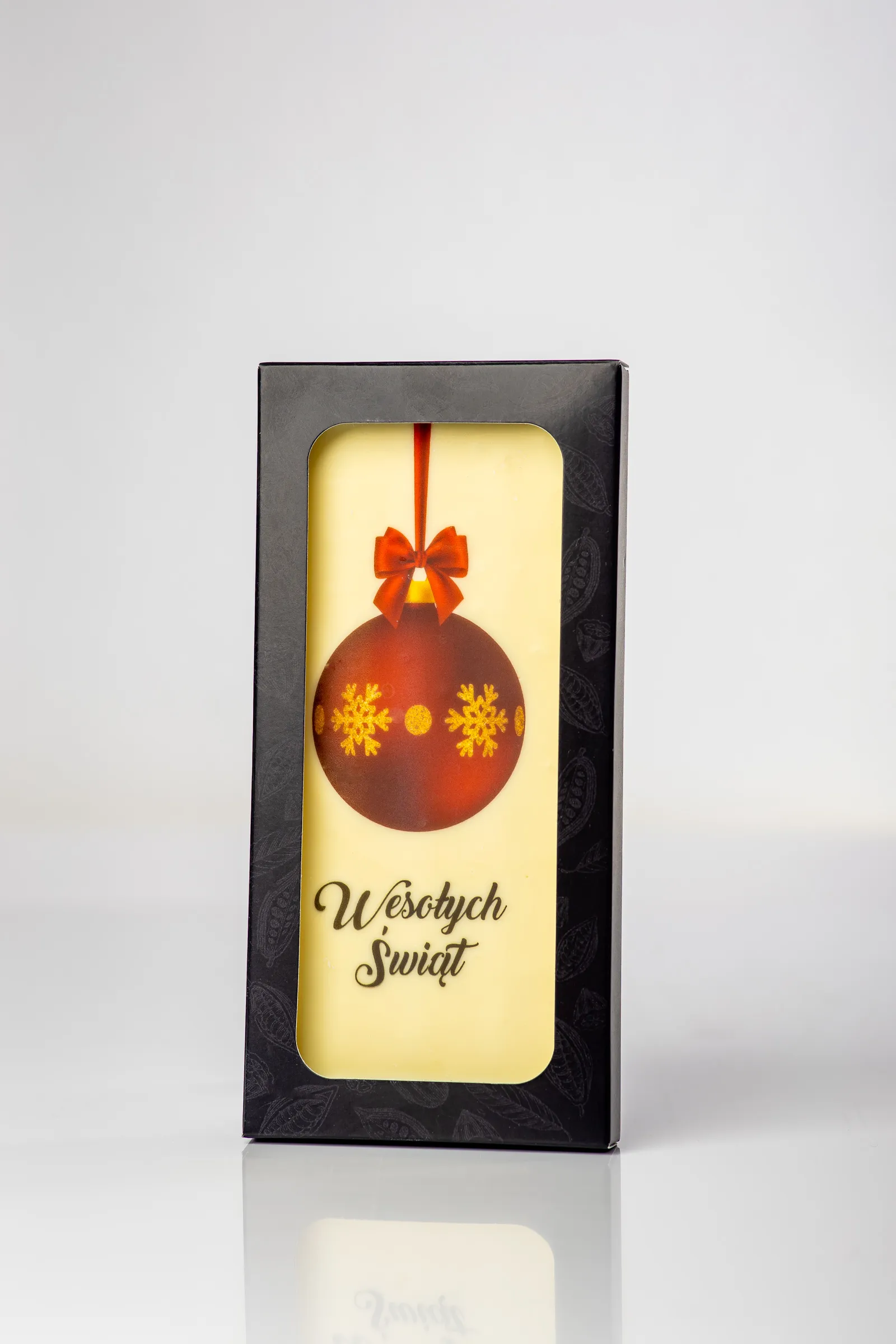 Składniki: czekolada biała (cukier, tłuszcz kakaowy, mleko pełne w proszku, emulgator: lecytyna sojowa, naturalny aromat waniliowy). Masa kakaowa minimum 25,9%.