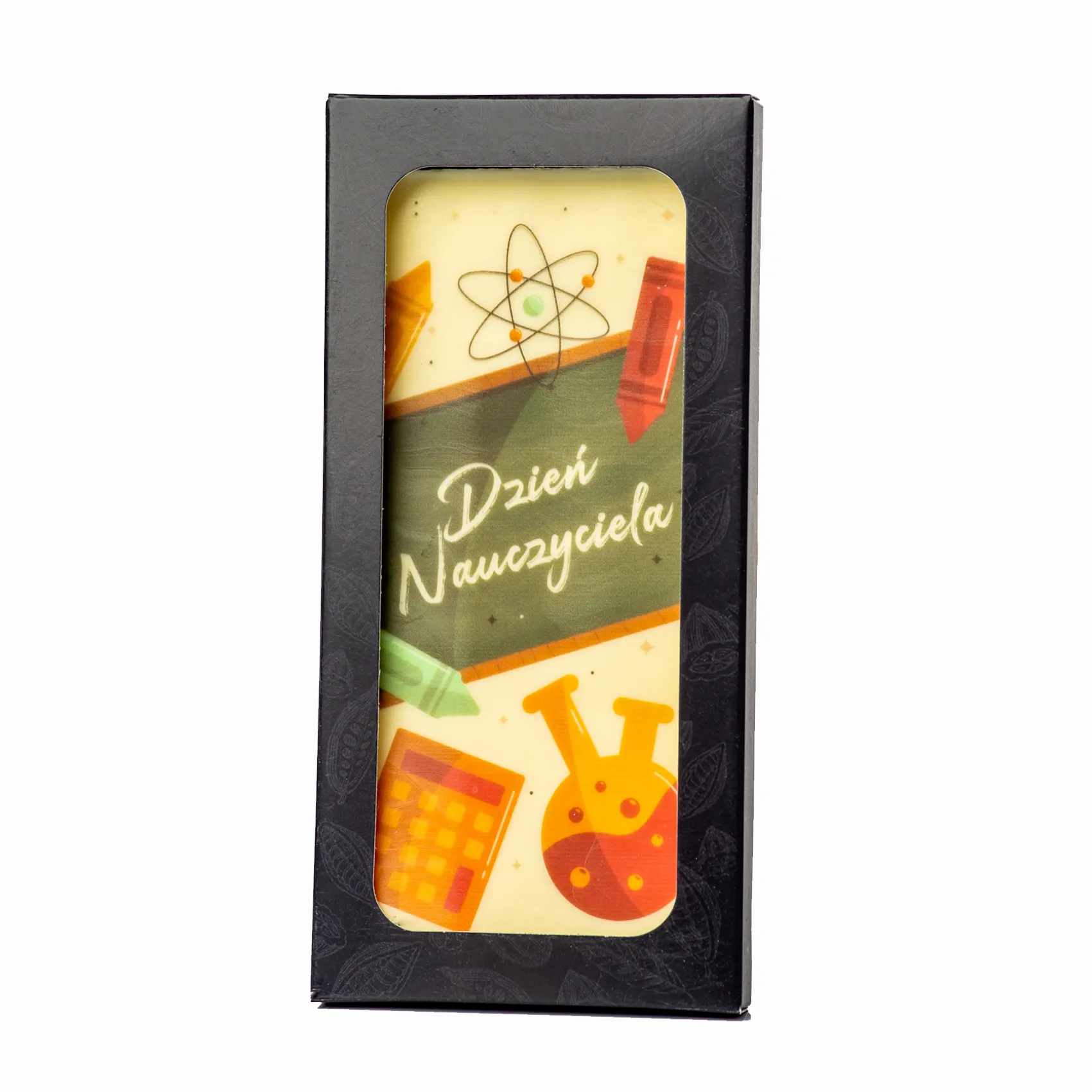 Składniki: czekolada biała (cukier, tłuszcz kakaowy, mleko pełne w proszku, emulgator: lecytyna sojowa, naturalny aromat waniliowy). Masa kakaowa minimum 25,9%.