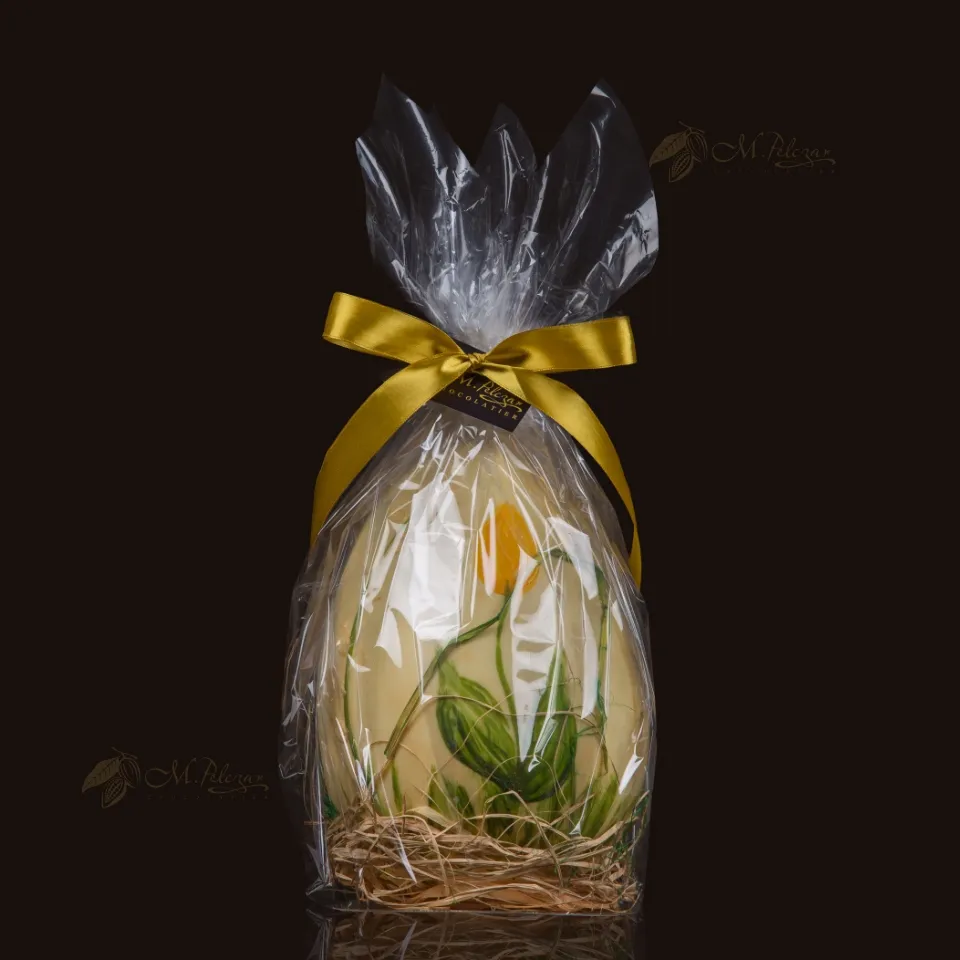 Pisanka ręcznie malowana z pysznej białej czekolady.