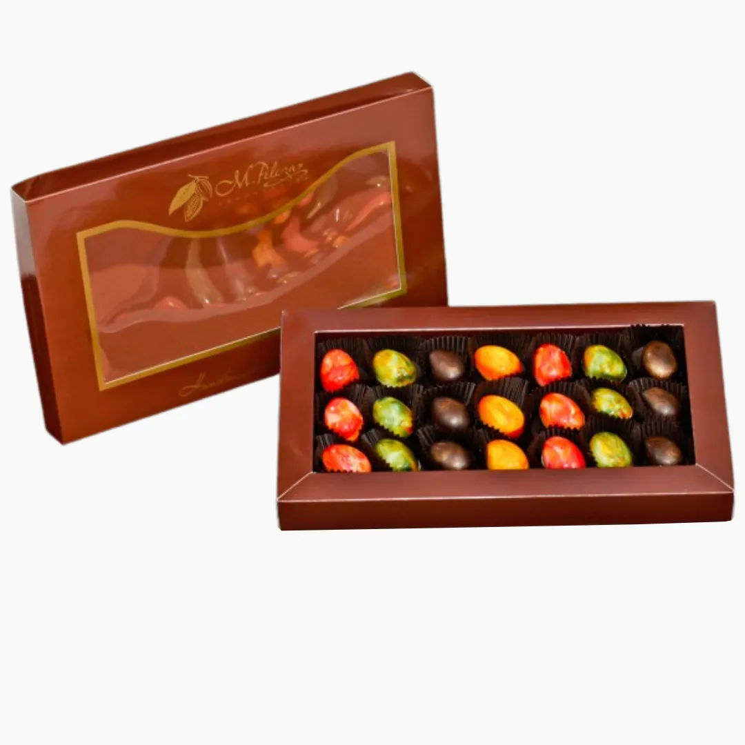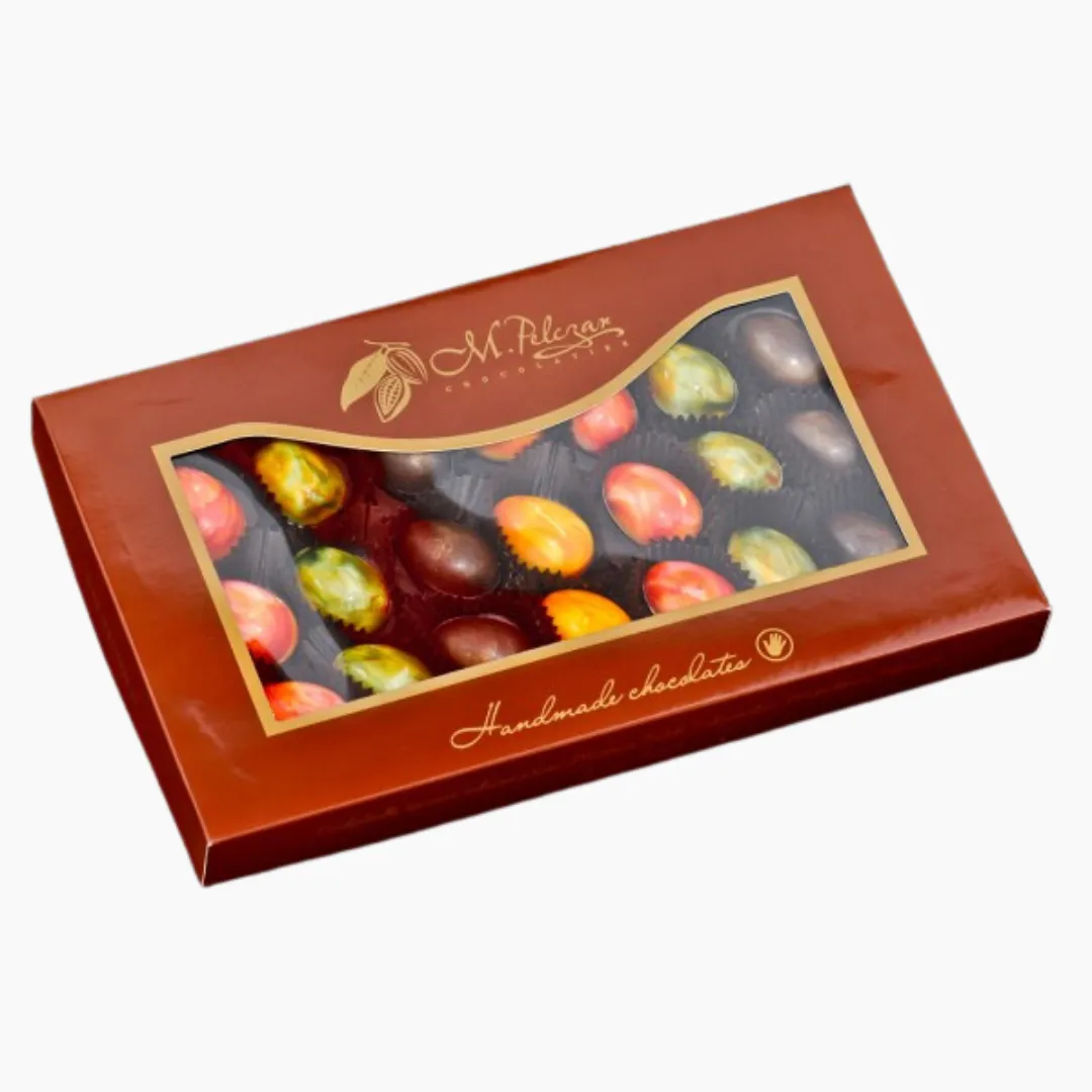 Przepiękne kolorowe jajka czekoladowe, wykonane z pysznej białej i gorzkiej czekolady.