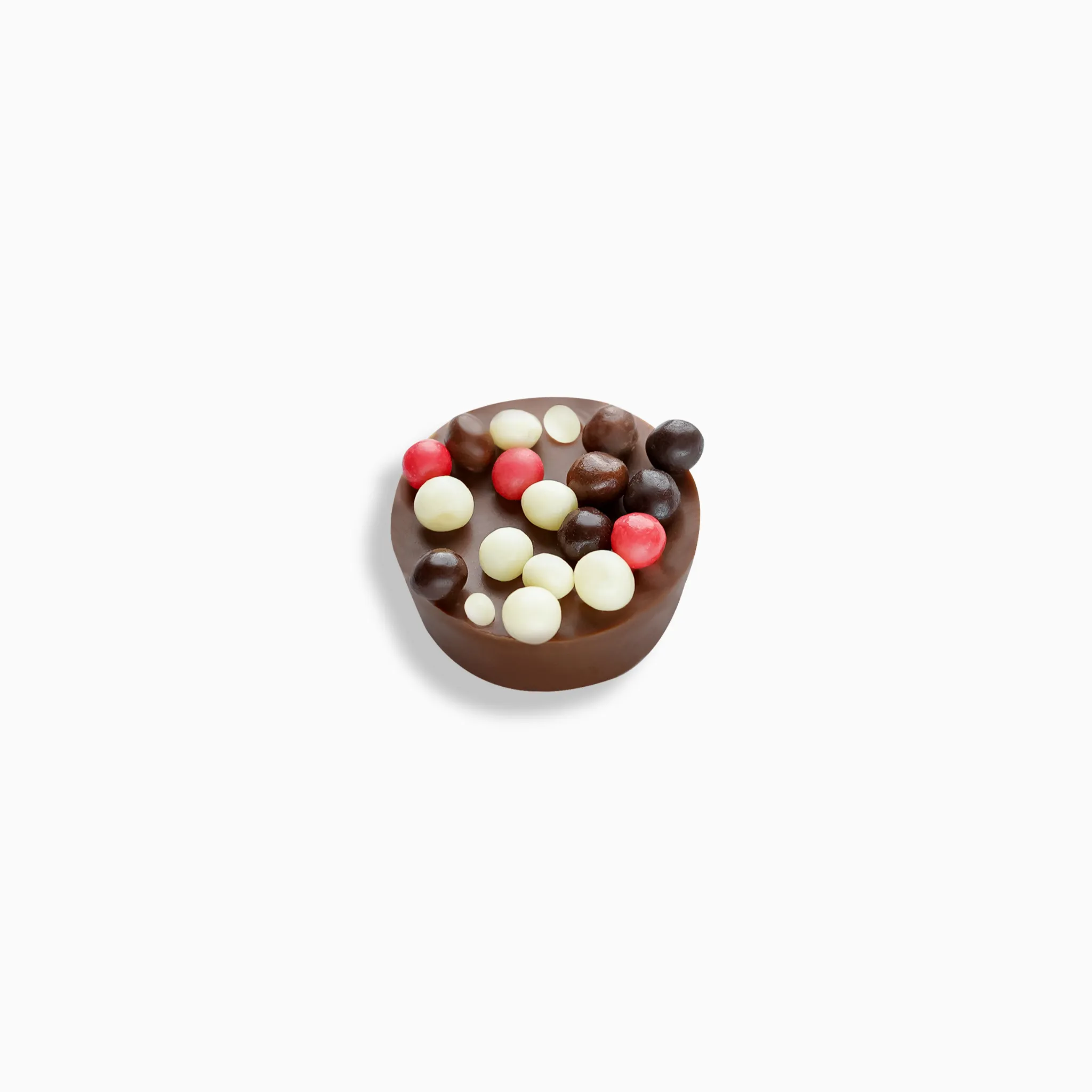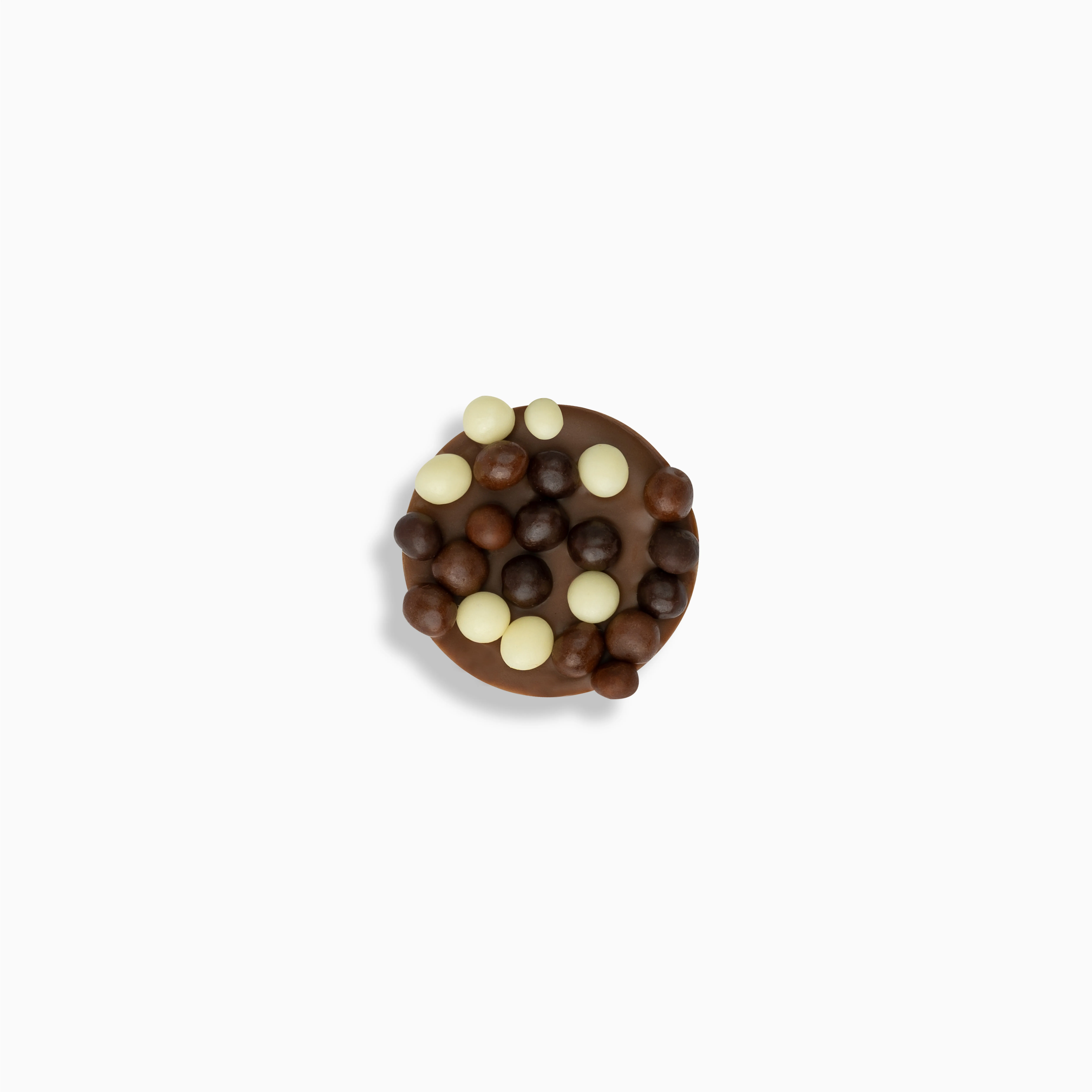 Orzech arachidowy: mleczne nadzienie o smaku orzecha arachidowego zamknięte w mlecznej czekoladzie, z kuleczkami czekoladowymi na wierzchu.