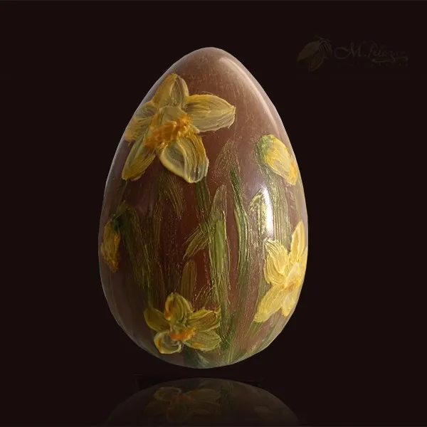 Pisanka ręcznie malowana z pysznej mlecznej czekolady.