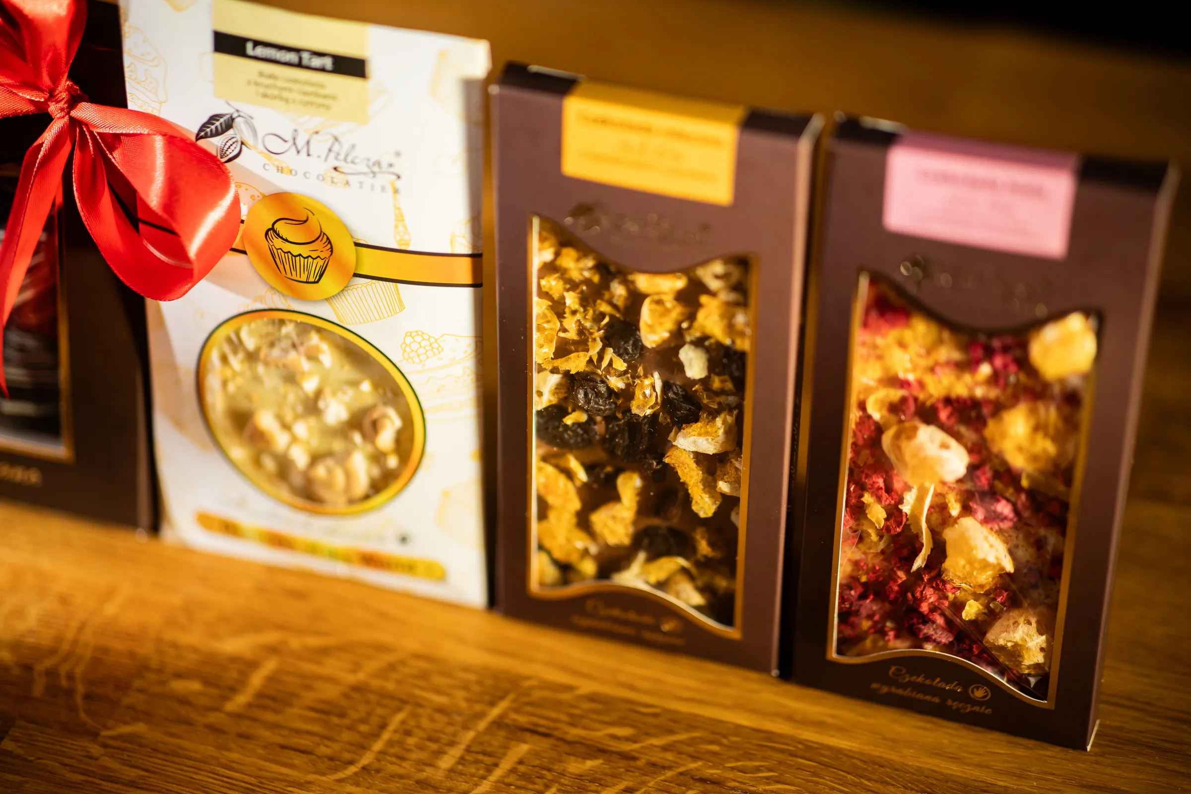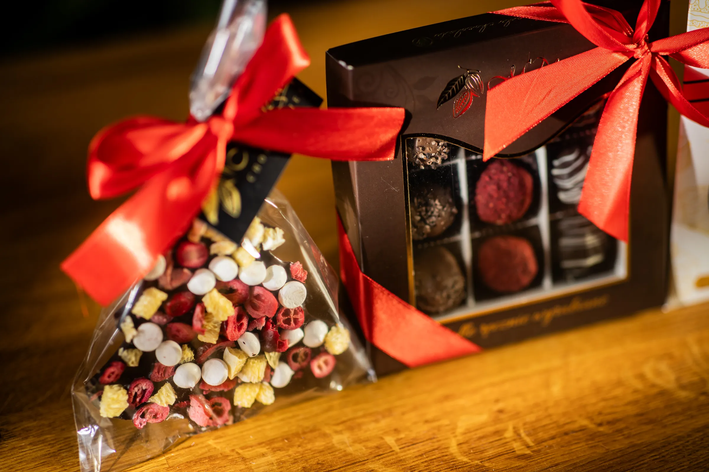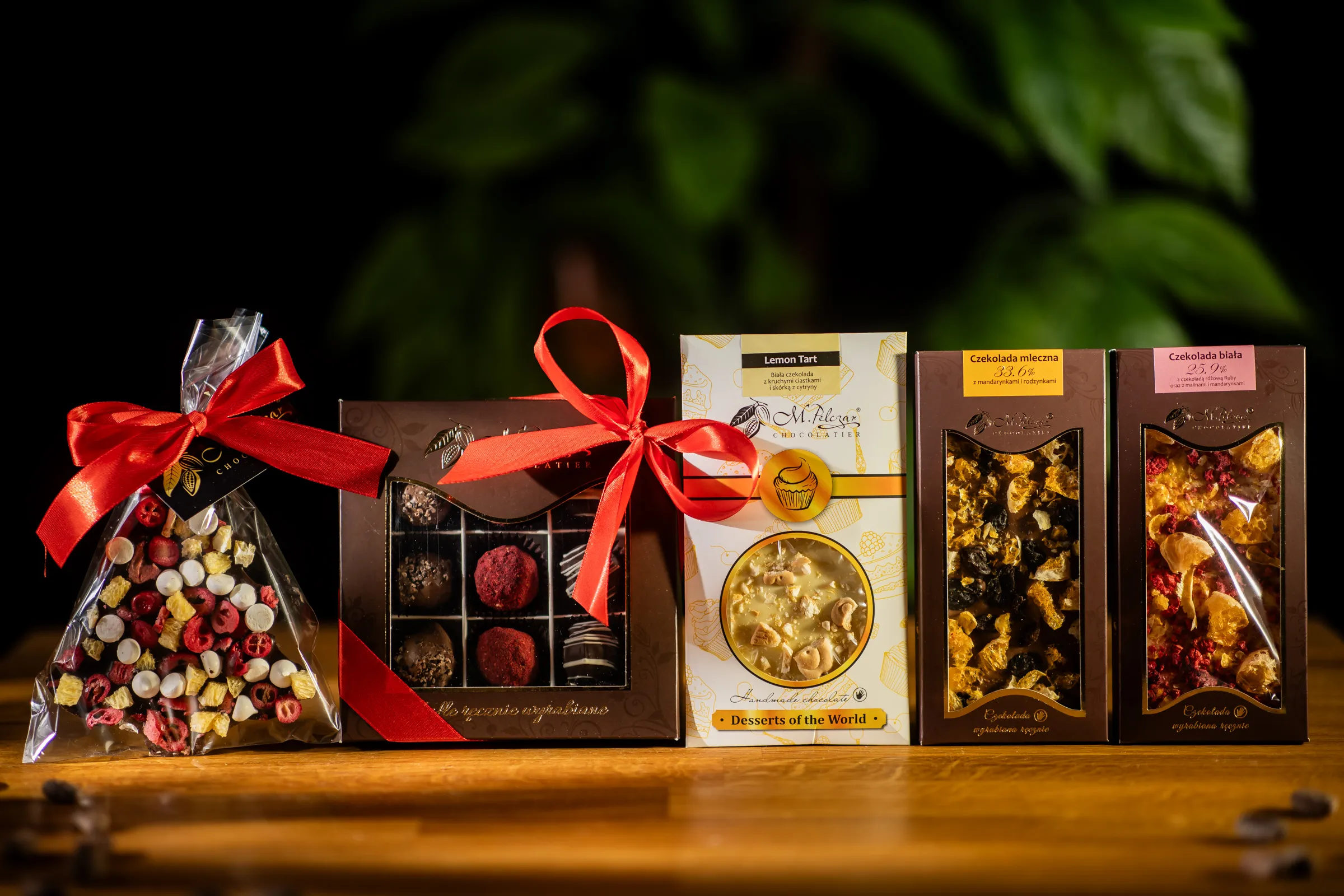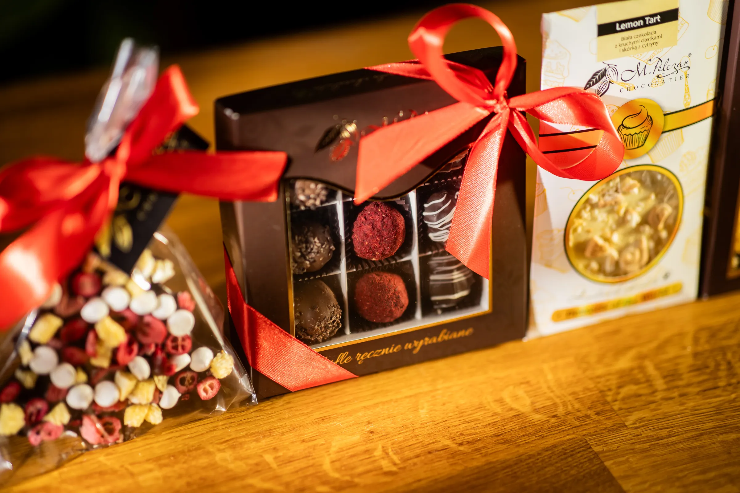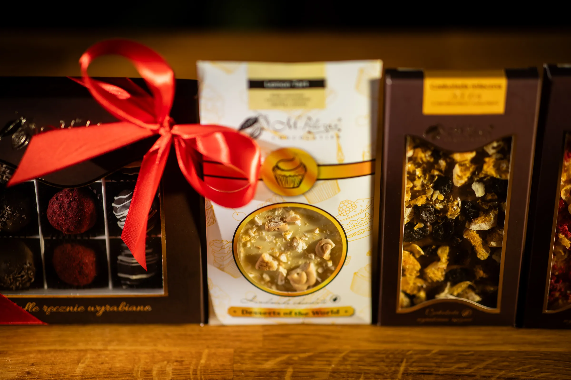 Obok niej króluje kolekcja naszych autorskich trufli. Każda z nich to małe dzieło sztuki – aksamitne wnętrze otulone chrupiącą warstwą czekolady. To symfonia smaków i tekstur, która zadowoli najbardziej wymagające podniebienia.