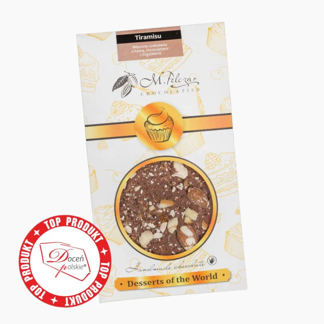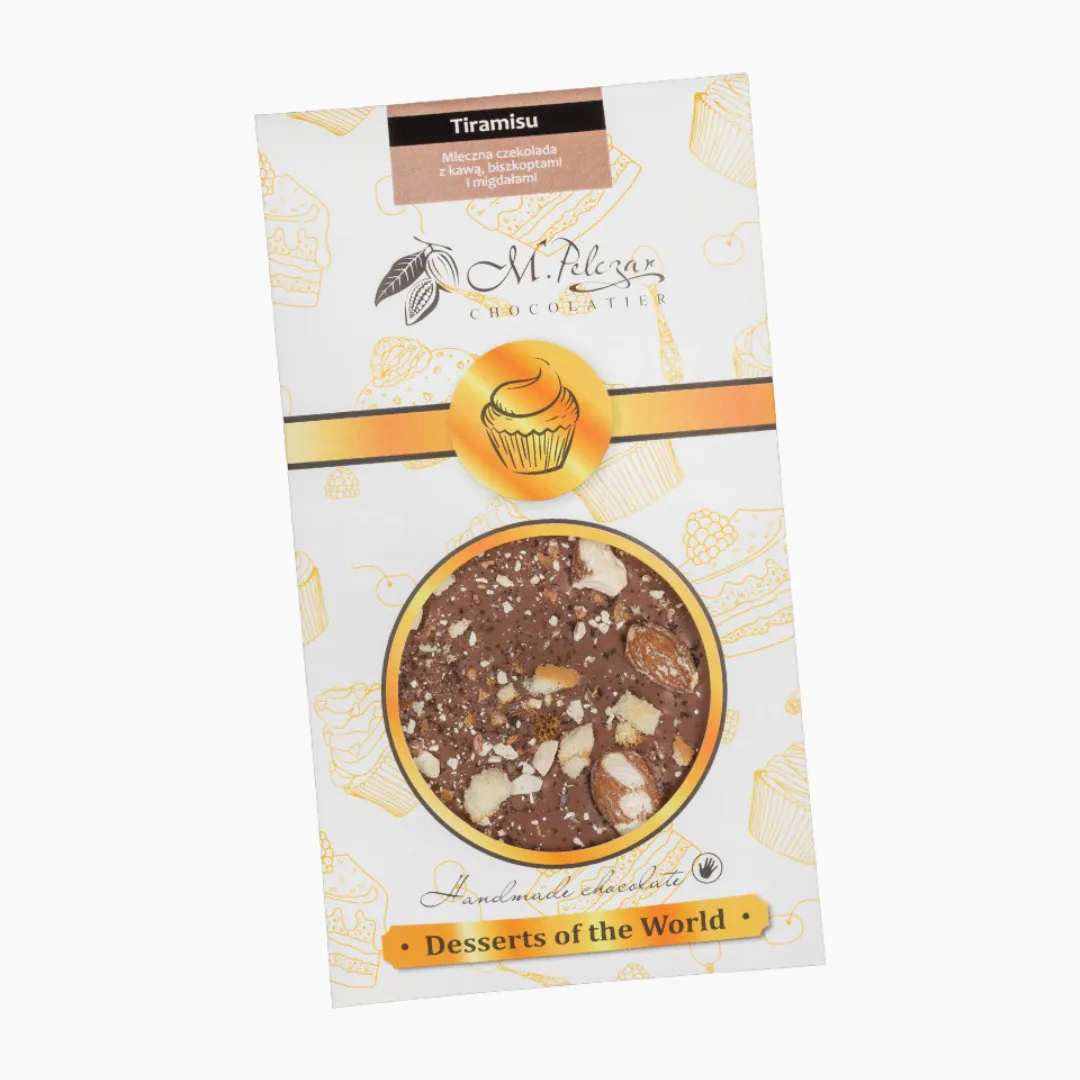 Tiramisu – mleczna czekolada z kawą, biszkoptami i migdałami. Deser wyróżnia się delikatną konsystencją, intensywnym kawowym smakiem i rozpływa się w ustach, swoje korzenie ma we Włoszech. W dosłownym tłumaczeniu oznacza „obudzić się” lub „podnieść się (na duchu)”, deser złożony z warstwy biszkoptu nasączonej bardzo mocną kawą espresso, na którą nakłada się warstwę kremu z sera mascarpone, żółtek jaj kurzych i cukru, a całość posypuje się warstwą grubo zmielonych płatków z gorzkiej czekolady. W Polsce popularna jest odmiana z biszkoptami nasączonymi dodatkowo likierem amaretto.