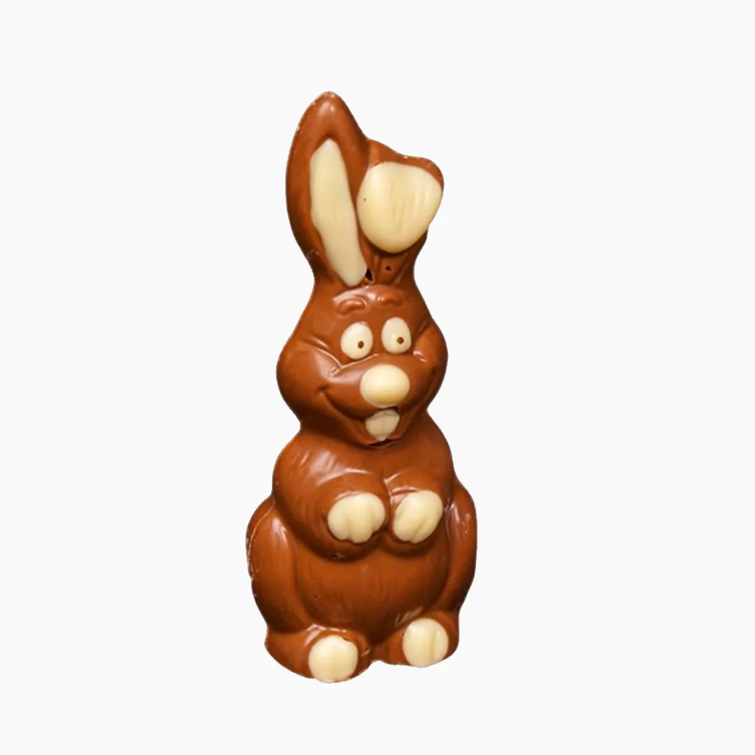 Piękny czekoladowy zając wykonany z pysznej mlecznej i białej czekolady.