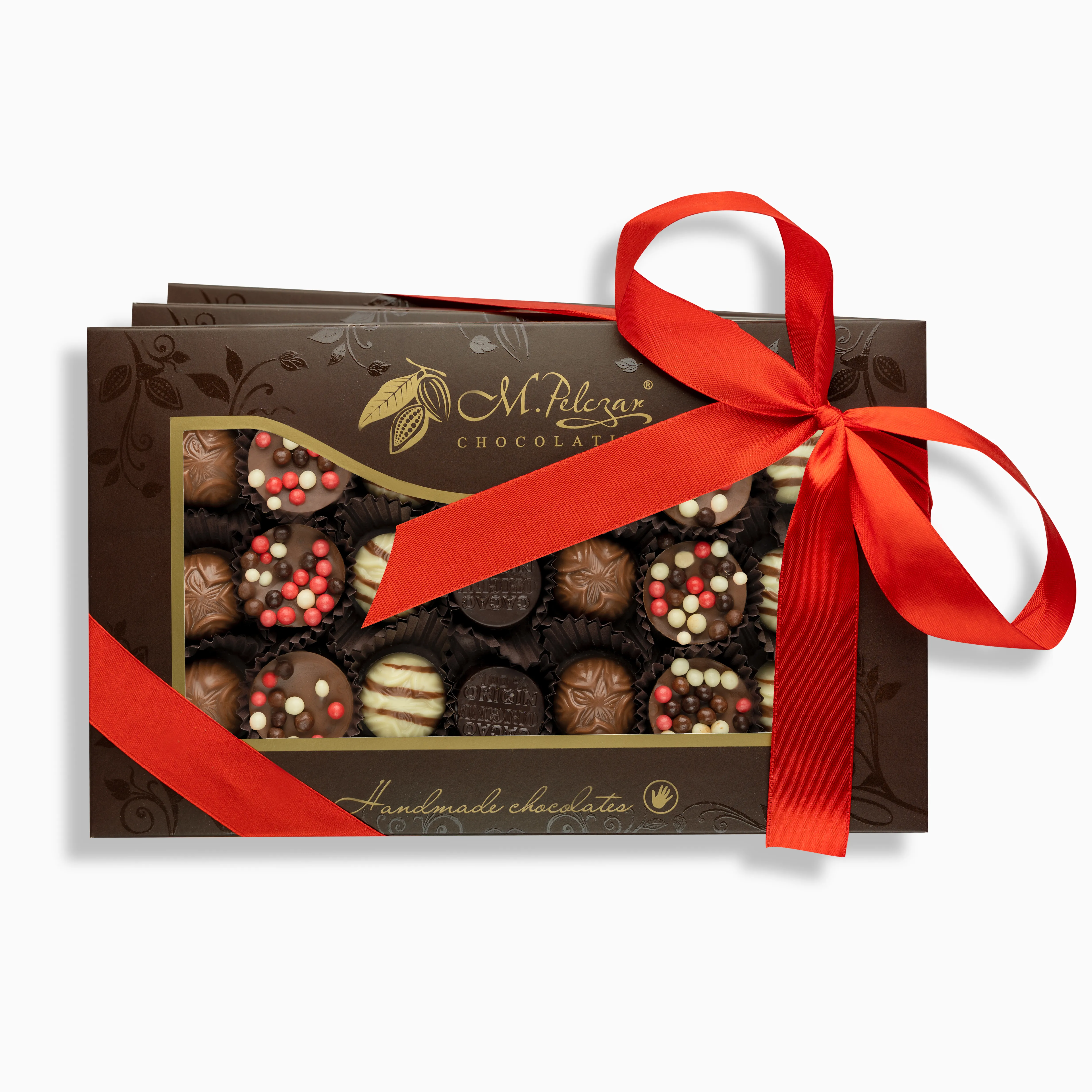 Rozsmakuj się w wyjątkowych pralinkach, i poczuj smak ręcznie robionych czekoladek. Kolekcja przygotowana przez Mistrza Polski Cukierników. Czekoladki zapakowane zostały w prestiżowe brązowe pudełka przyozdobione wstążeczką. Ukryliśmy w nim 63 ręcznie robione pralinki w różnych smakach i kształtach. Gustowny i wyjątkowo apetyczny upominek.